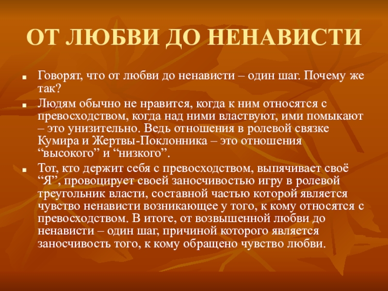 Слайд 5ОТ ЛЮБВИ ДО НЕНАВИСТИ