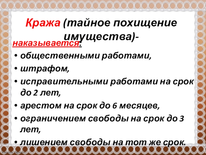 Слайд 5Кража (тайное похищение имущества)-