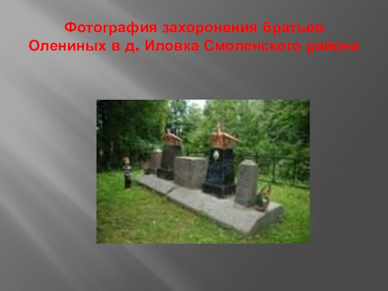 Слайд 65Фотография захоронения братьев Олениных в д. Иловка Смоленского района