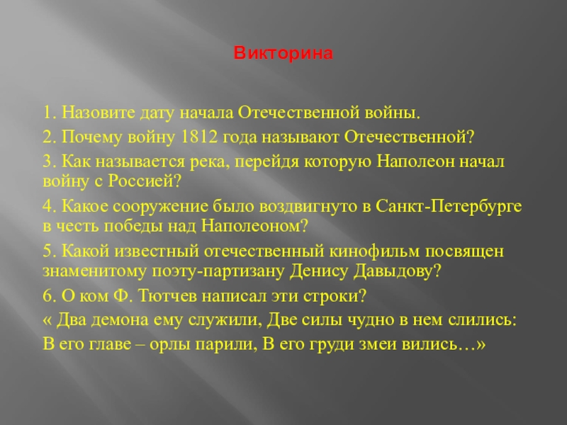 5. Какой известный отечественный кинофильм посвящен знаменитому поэту-партизану Денису Давыдову?