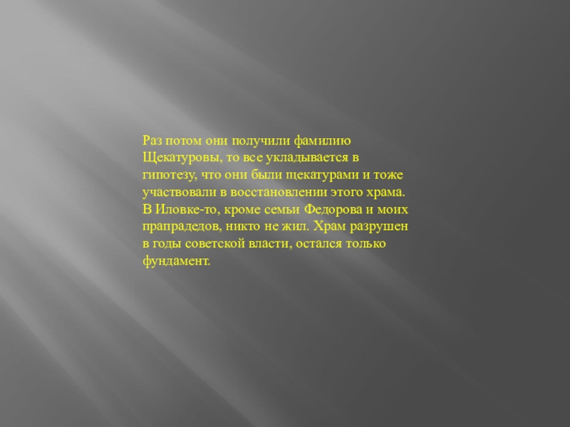 Слайд 10Раз потом они получили фамилию Щекатуровы, то все укладывается в гипотезу,