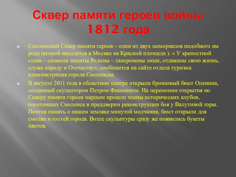 Слайд 67Бюст Е.И.Оленина в Сквере памяти г. Смоленска