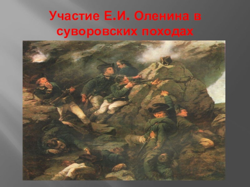 Слайд 18Участие Е.И. Оленина в суворовских походах
