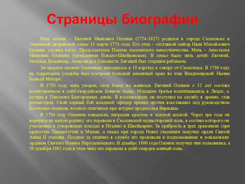 Наш земляк – Евгений Иванович Оленин (1774-1827) родился в городе