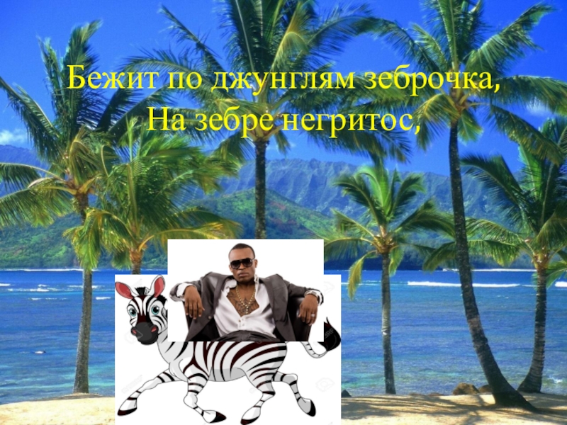 Слайд 5 Бежит по джунглям зеброчка,  На зебре негритос,