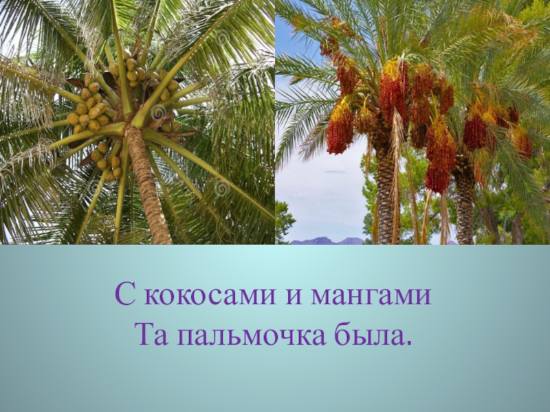 Слайд 2 С кокосами и мангами  Та пальмочка была.