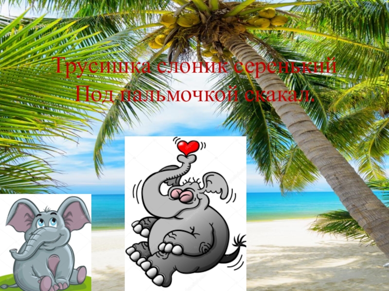 Слайд 3 Трусишка слоник серенький  Под пальмочкой скакал.