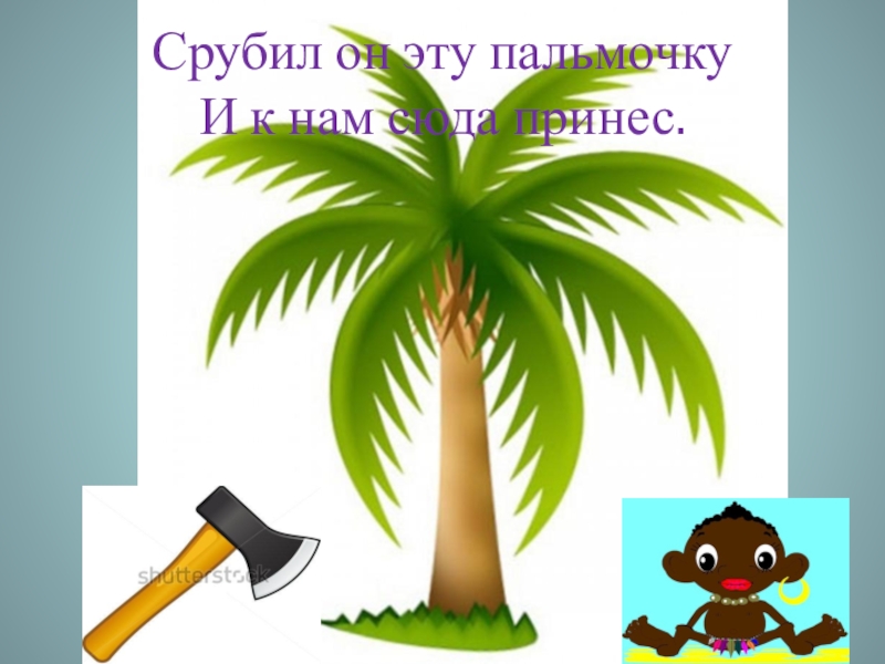Слайд 6 Срубил он эту пальмочку  И к нам сюда принес.