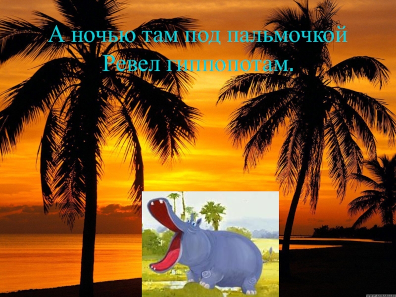 Слайд 4А ночью там под пальмочкой  Ревел гиппопотам.