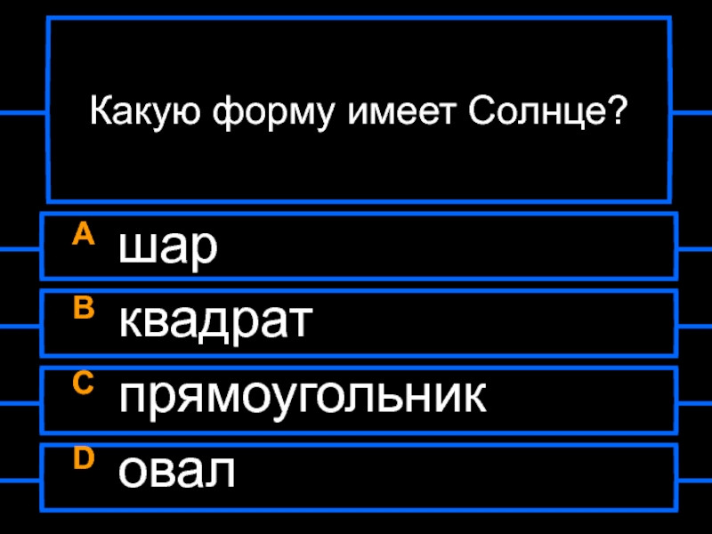 Какую форму имеет Солнце?A шарB квадратC прямоугольникD овал