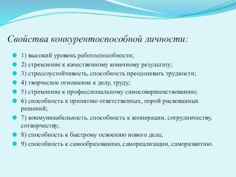 7) коммуникабельность, способность к кооперации, сотрудничеству, сотворчеству;