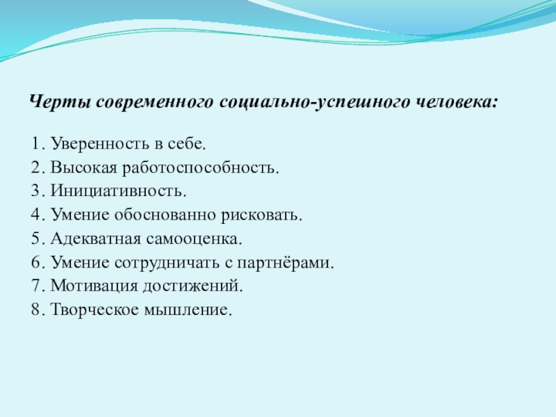 Человек является социально успешным, если его индивидуальные способности и навыки