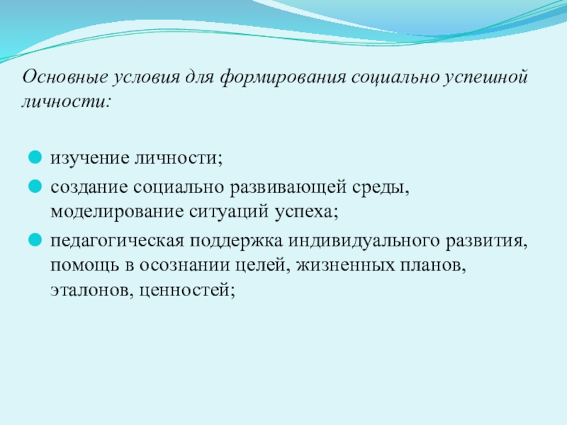 педагогическая поддержка индивидуального развития, помощь в осознании целей, жизненных планов, эталонов, ценностей;