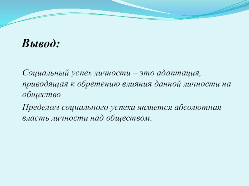 Социальный успех личности – это адаптация, приводящая к обретению влияния данной