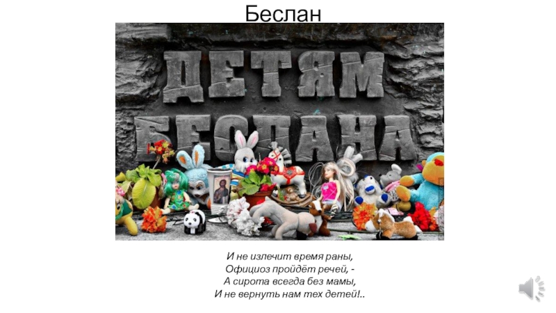 Беслан  И не излечит время раны,           Официоз пройдёт речей, -           А сирота всегда без мамы,           И