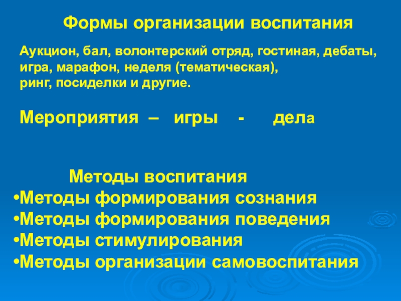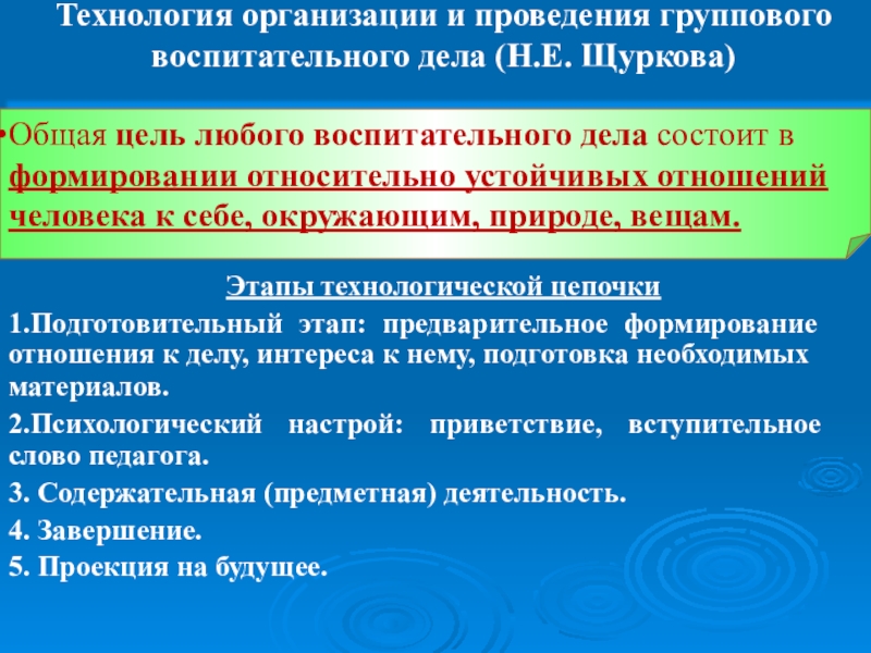 Общая цель любого воспитательного дела состоит в формировании относительно устойчивых отношений человека к себе, окружающим, природе, вещам.