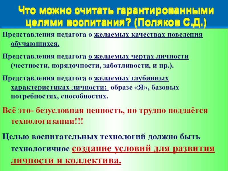 Что можно считать гарантированными целями воспитания? (Поляков С.Д.)