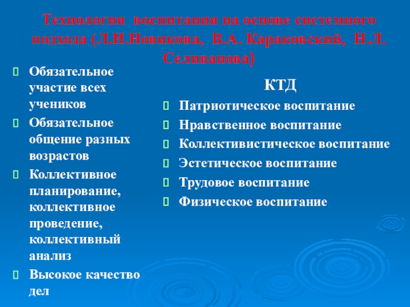 Технология воспитания на основе системного подхода (Л.И.Новикова, В.А. Караковский, Н.Л.Селиванова)
