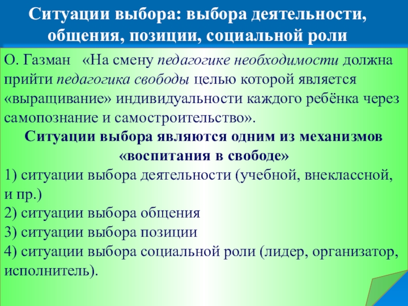Ситуации выбора: выбора деятельности, общения, позиции, социальной роли