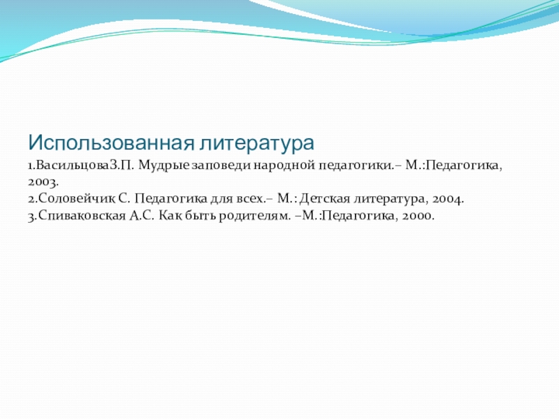 1.ВасильцоваЗ.П. Мудрые заповеди народной педагогики.– М.:Педагогика, 2003.