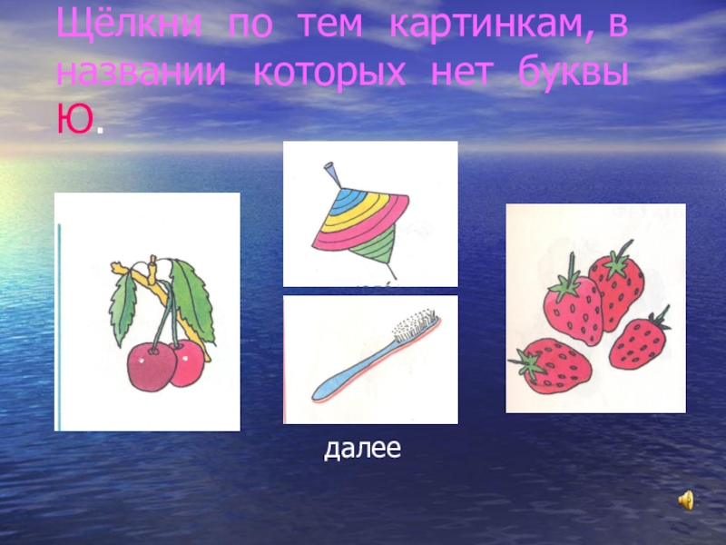 Слайд 3Щёлкни по тем картинкам, в названии которых нет буквы