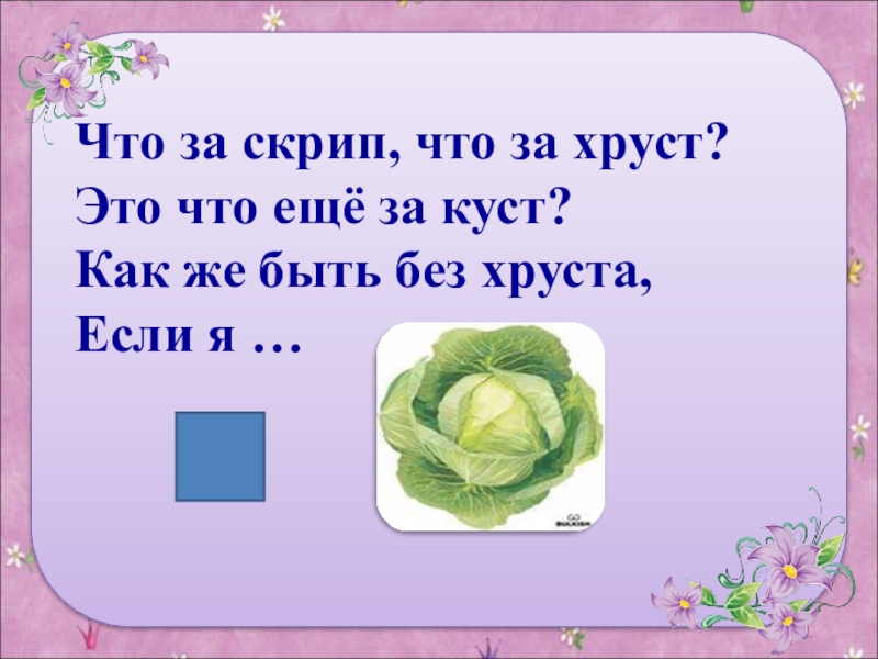 Что за скрип, что за хруст?Это что ещё за куст?Как же быть без хруста,Если я …