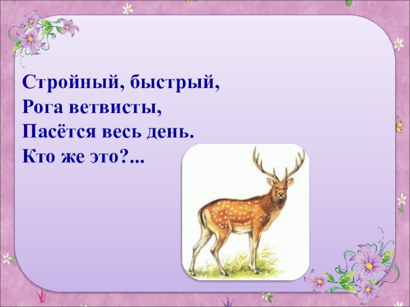 Стройный, быстрый,Рога ветвисты,Пасётся весь день.Кто же это?...