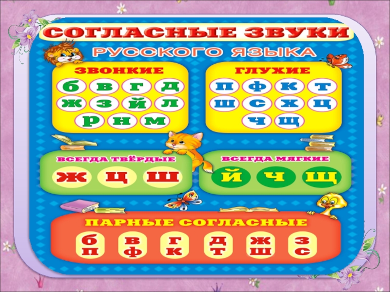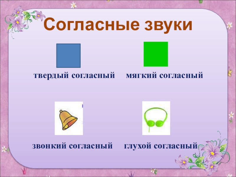 Согласные звукитвердый согласныймягкий согласныйзвонкий согласныйглухой согласный