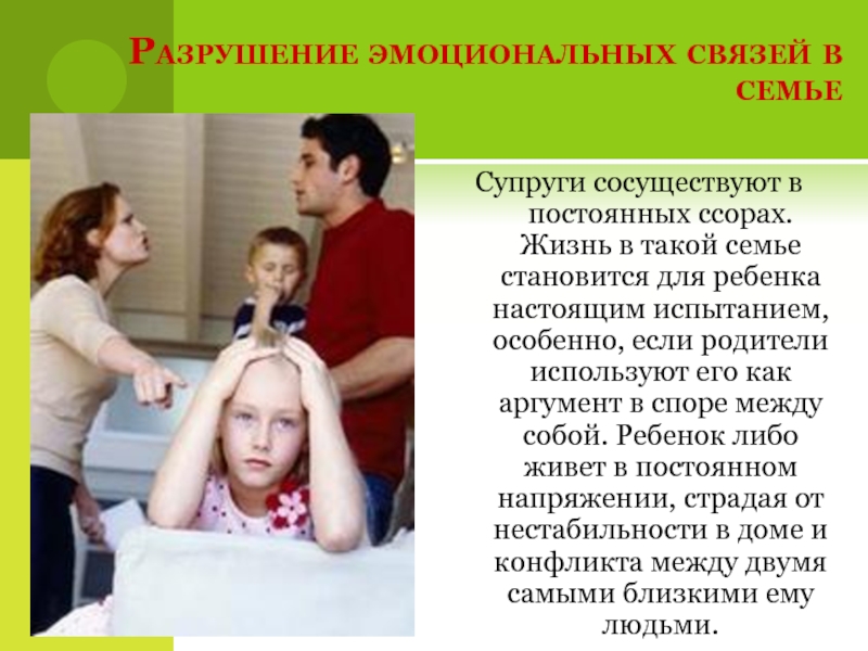 такой семье становится для ребенка настоящим испытанием, особенно, если родители используют его как аргумент в споре между собой. Ребенок либо живет в постоянном напряжении, страдая от нестабильности в доме и конфликта между двумя самыми близкими ему людьми.