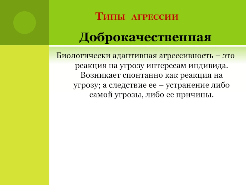 Биологически адаптивная агрессивность – это реакция на угрозу интересам индивида.