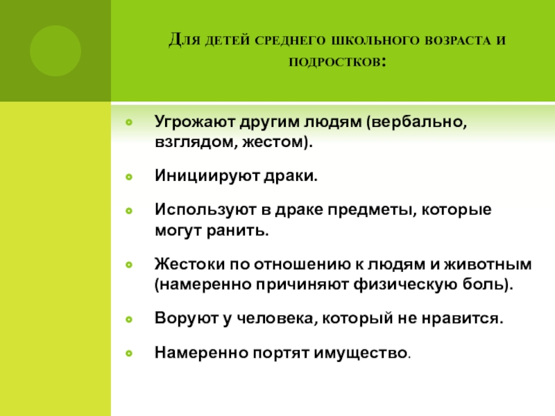Слайд 19Для детей среднего школьного возраста и подростков: