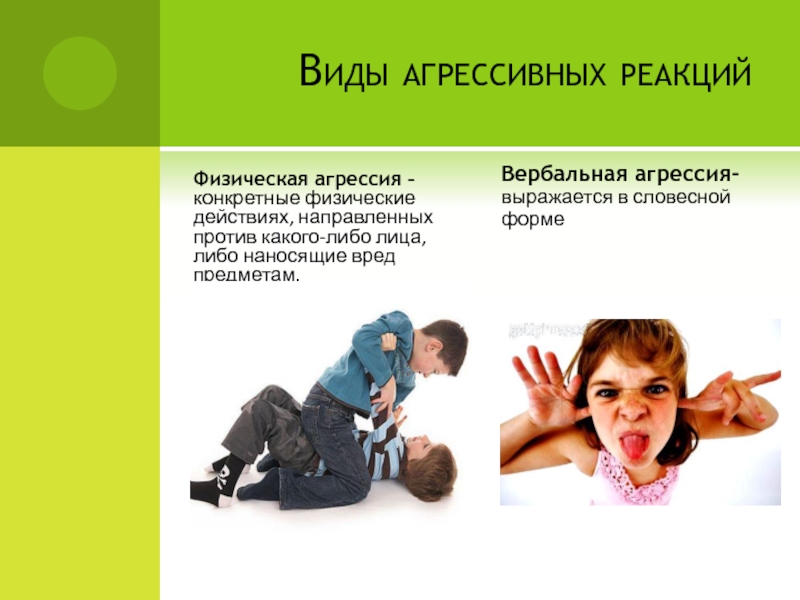 Физическая агрессия – конкретные физические действиях, направленных против какого-либо