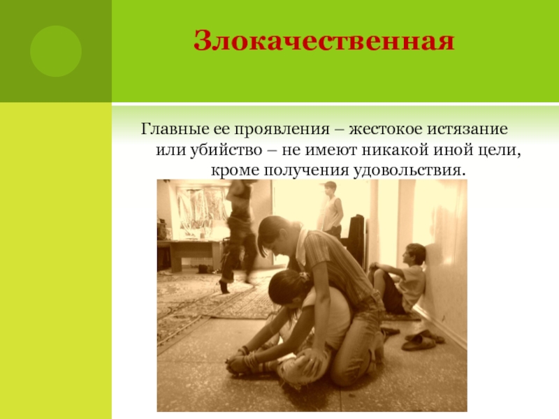 Главные ее проявления – жестокое истязание или убийство – не имеют