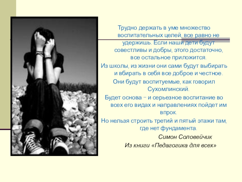 Трудно держать в уме множество воспитательных целей, все равно не удержишь.