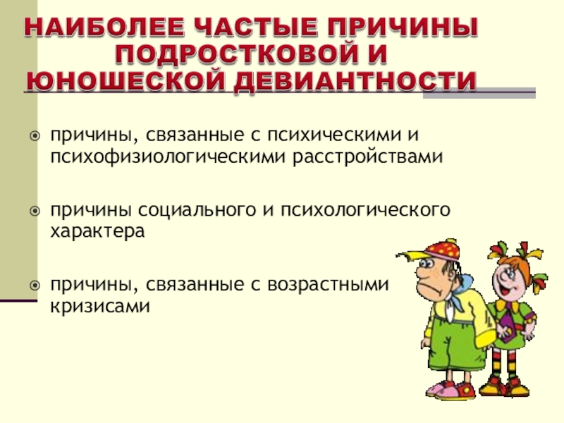 Слайд 4причины, связанные с психическими и психофизиологическими расстройствами