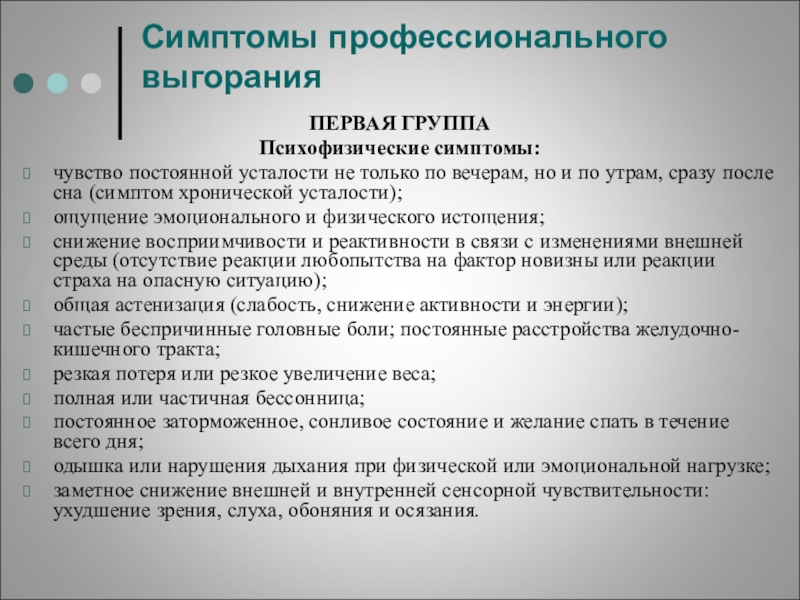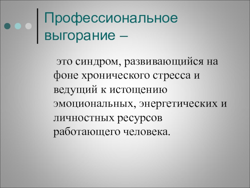ведущий к истощению эмоциональных, энергетических и личностных ресурсов работающего человека.