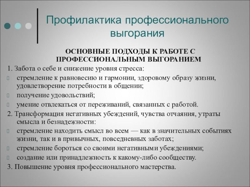 ОСНОВНЫЕ ПОДХОДЫ К РАБОТЕ С ПРОФЕССИОНАЛЬНЫМ ВЫГОРАНИЕМ