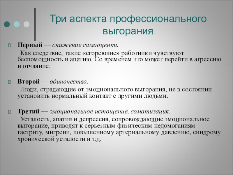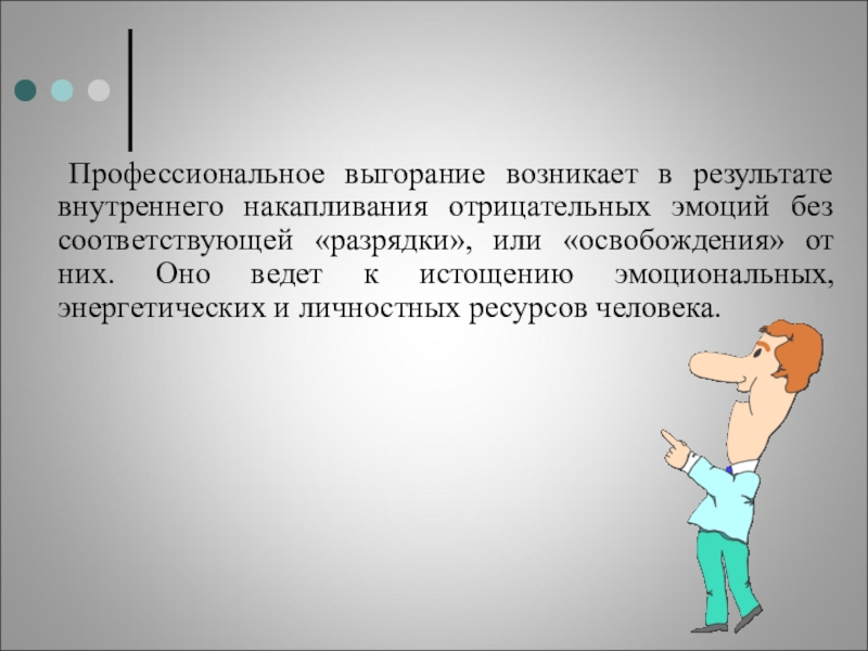 «разрядки», или «освобождения» от них. Оно ведет к истощению эмоциональных, энергетических и личностных ресурсов человека.