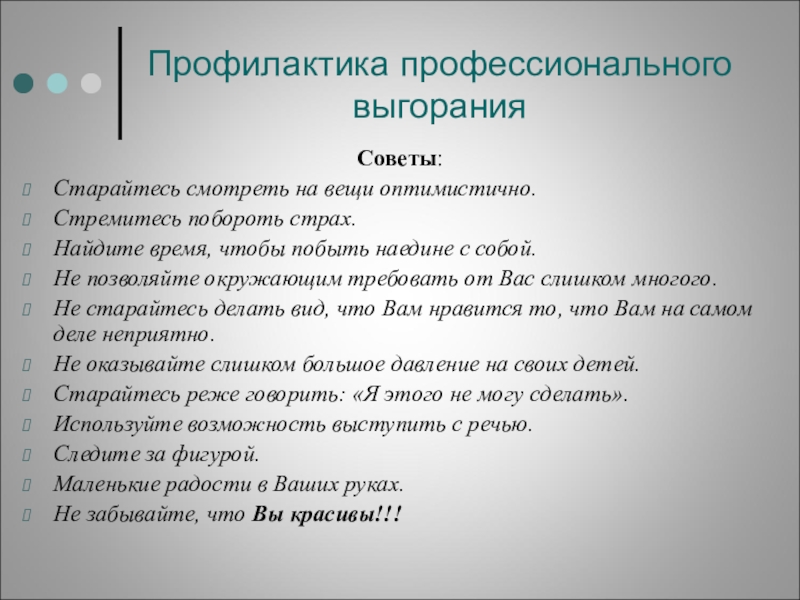 НЕ ожидайте, что тяжелые состояния, характерные для выгорания, уйдут сами по себе.