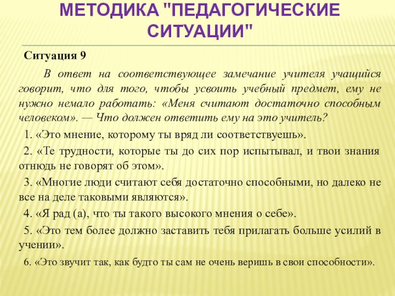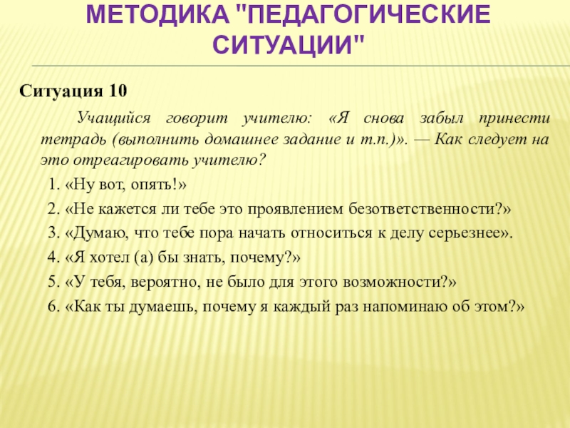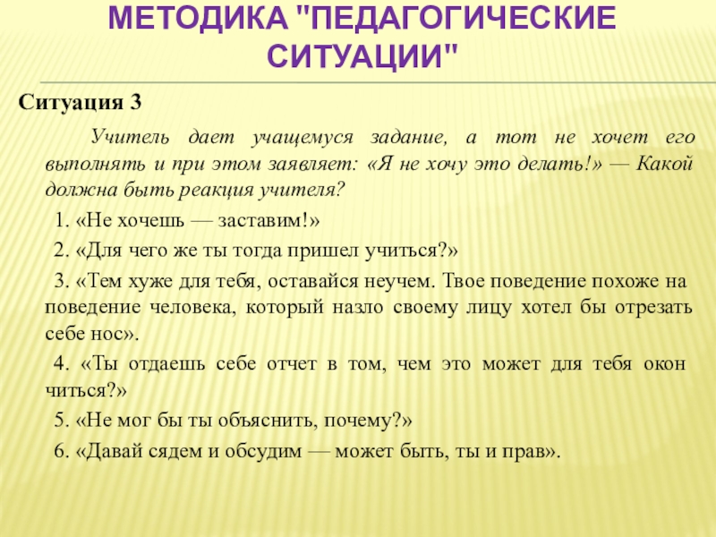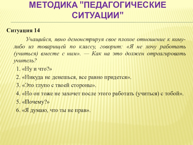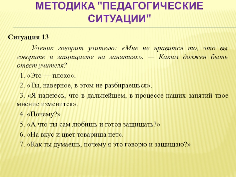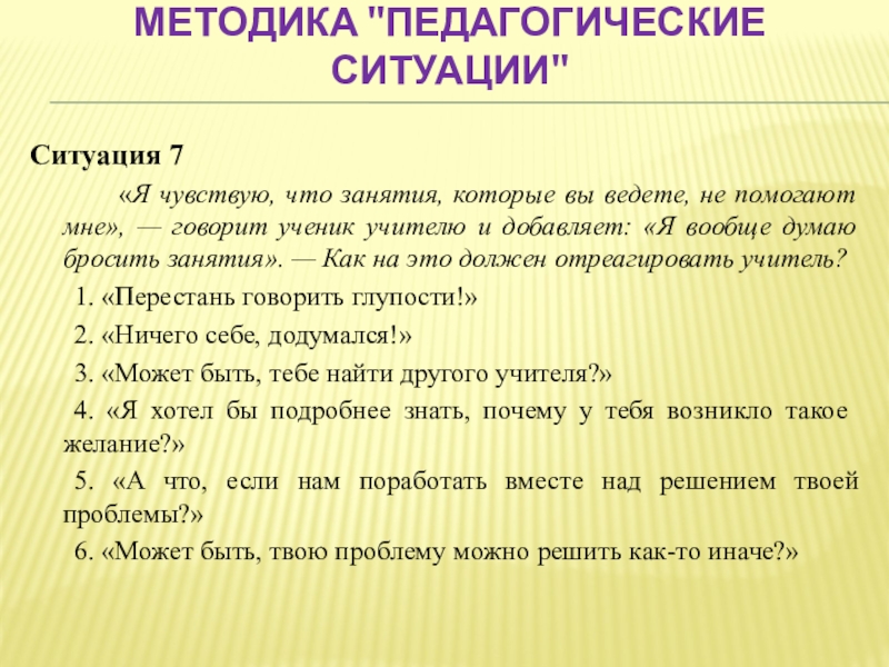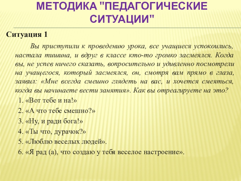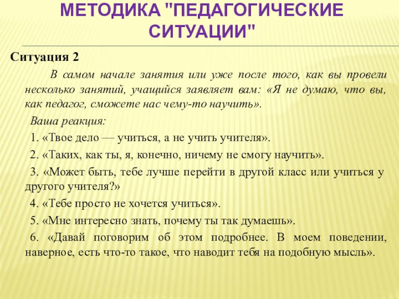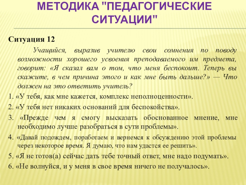 Слайд 50Методика "Педагогические ситуации"