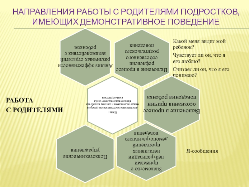 Слайд 28Направления работы с родителями подростков, имеющих демонстративное поведение