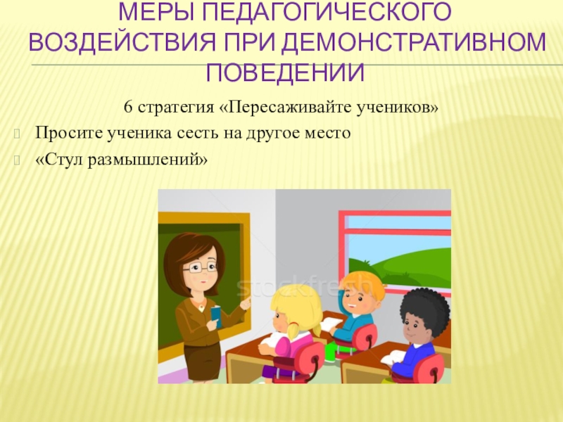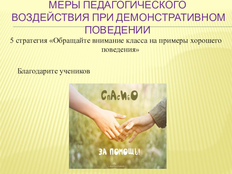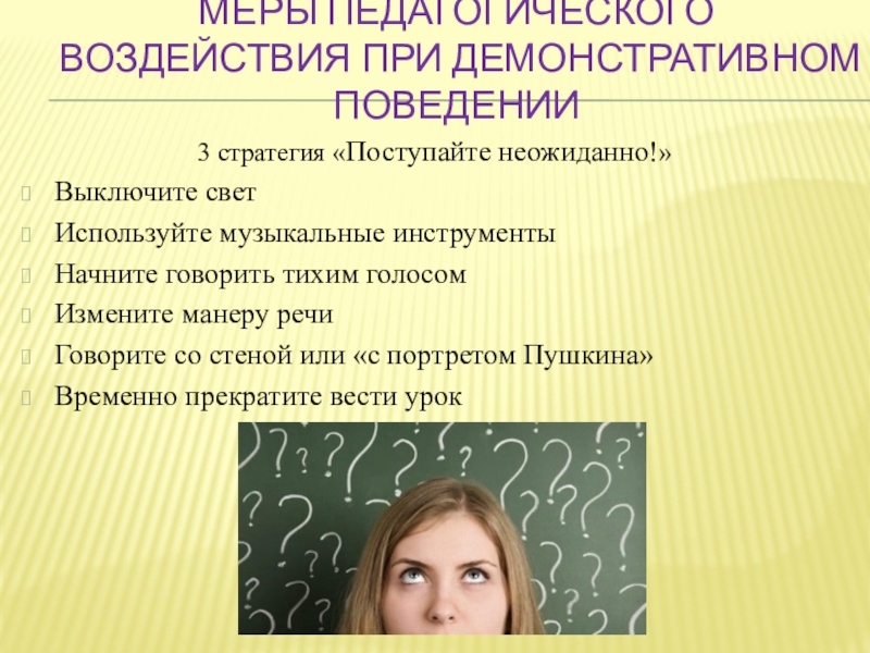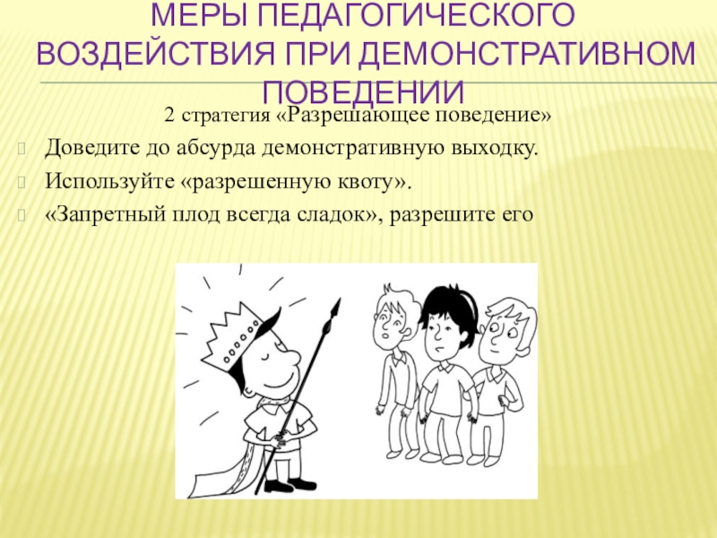 Слайд 30Меры педагогического воздействия при демонстративном поведении