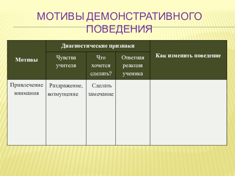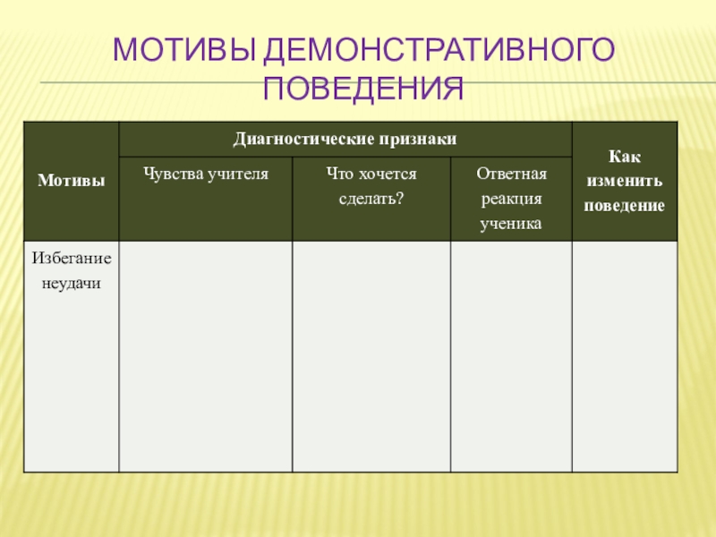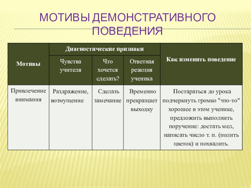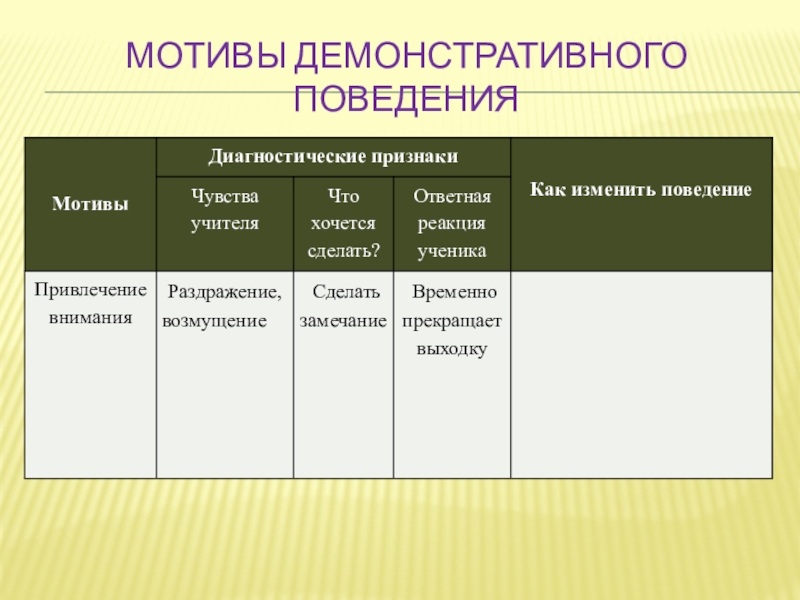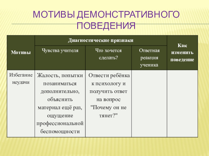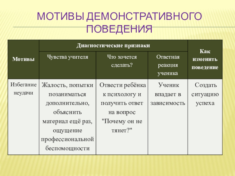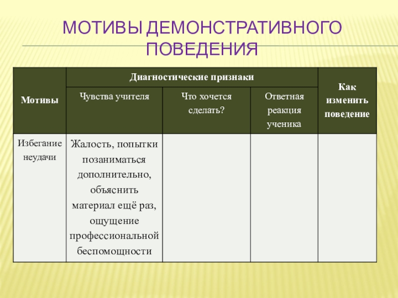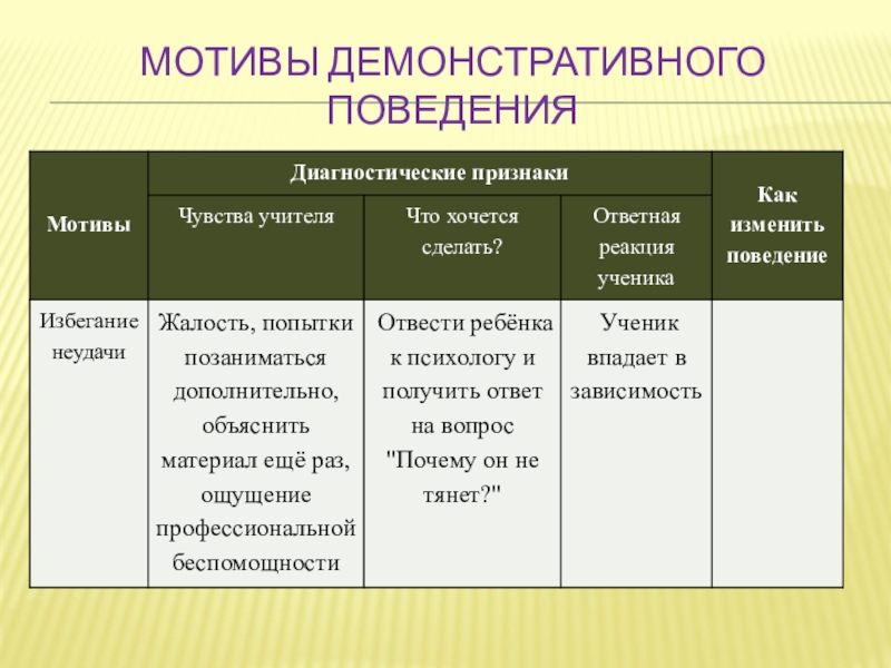 Слайд 13Мотивы демонстративного поведения