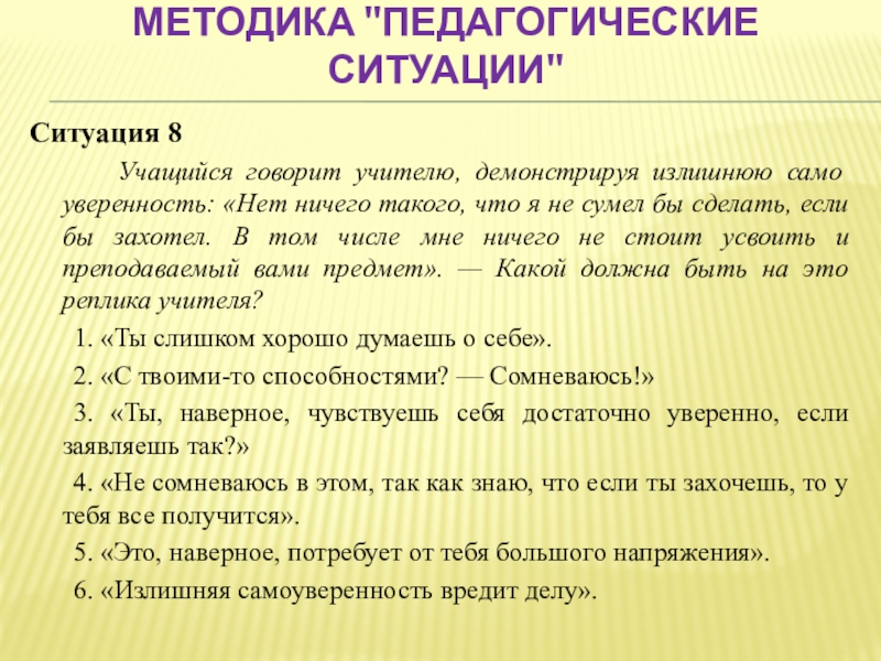 Слайд 46Методика "Педагогические ситуации"