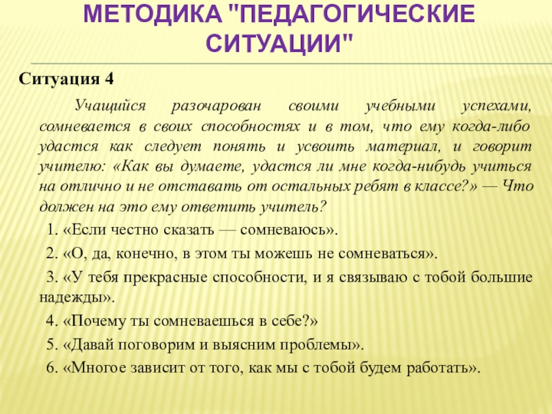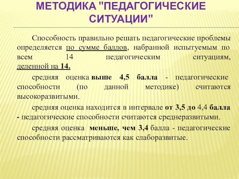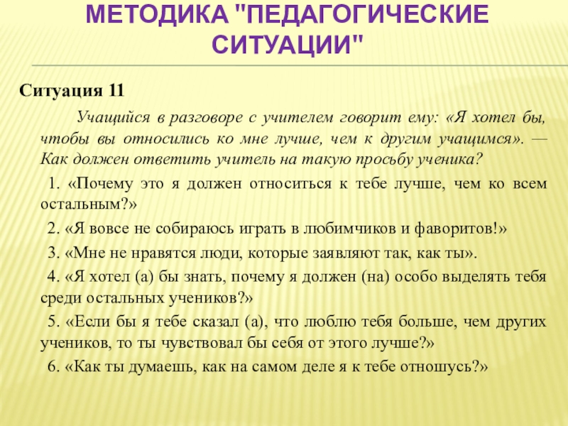 Слайд 45Методика "Педагогические ситуации"