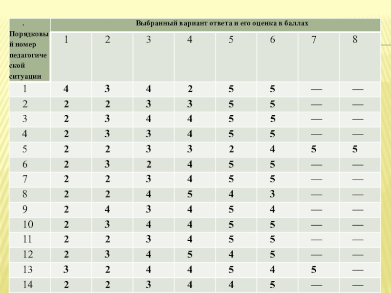 набранной испытуемым по всем 14 педагогическим ситуациям,