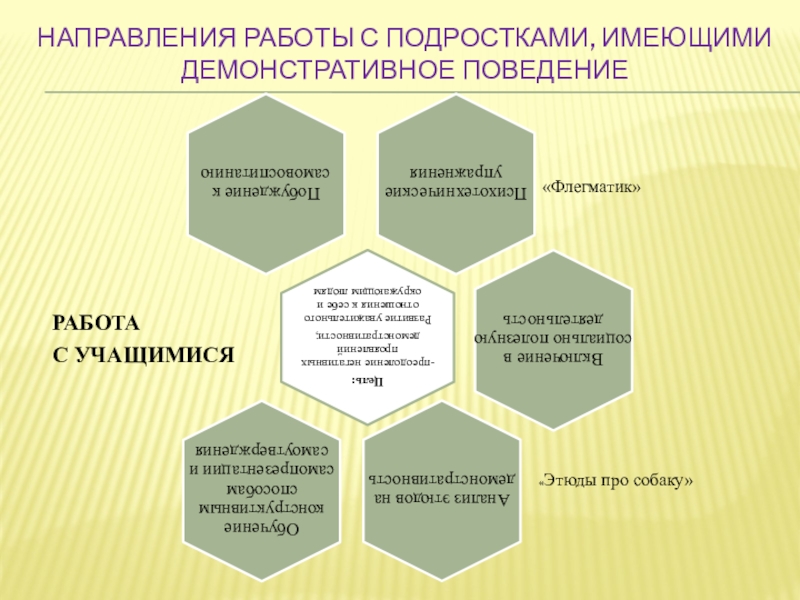 Слайд 27Направления работы с подростками, имеющими демонстративное поведение