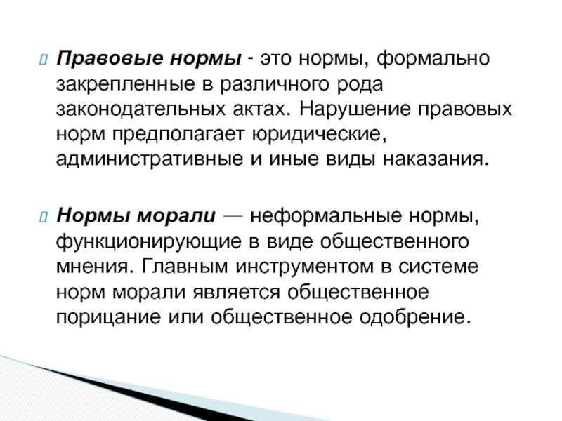 Слайд 5Правовые нормы - это нормы, формально закрепленные в различного рода законодательных актах.