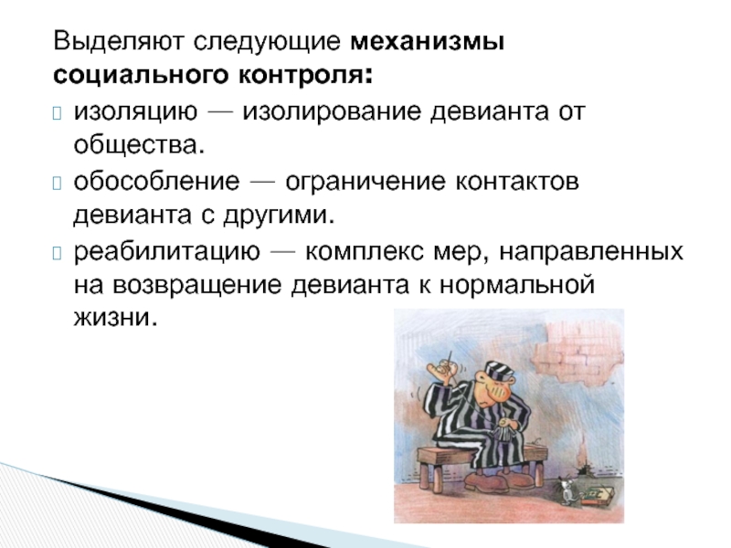 реабилитацию — комплекс мер, направленных на возвращение девианта к нормальной жизни.