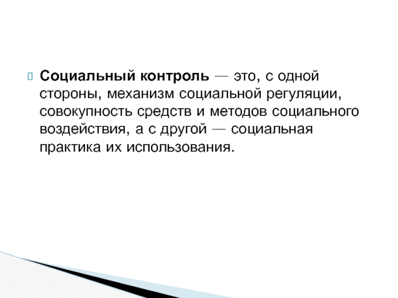 Слайд 3Социальный контроль — это, с одной стороны, механизм социальной регуляции, совокупность средств
